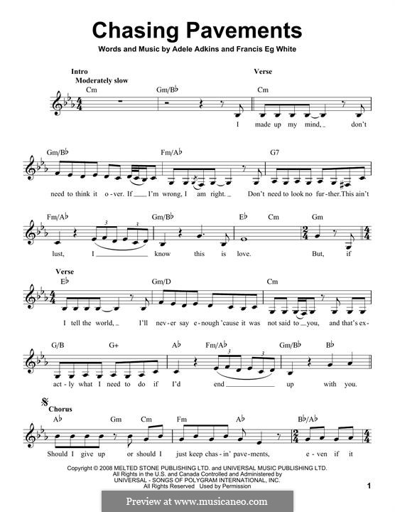 Chasing Pavements Sheet Music By Adele Lyrics Chasing